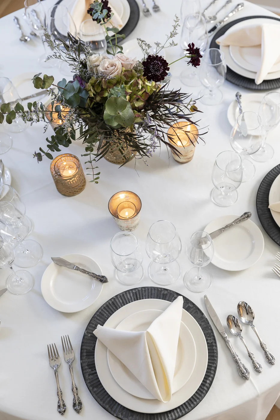 - House linens - white tablecloths and white napkins