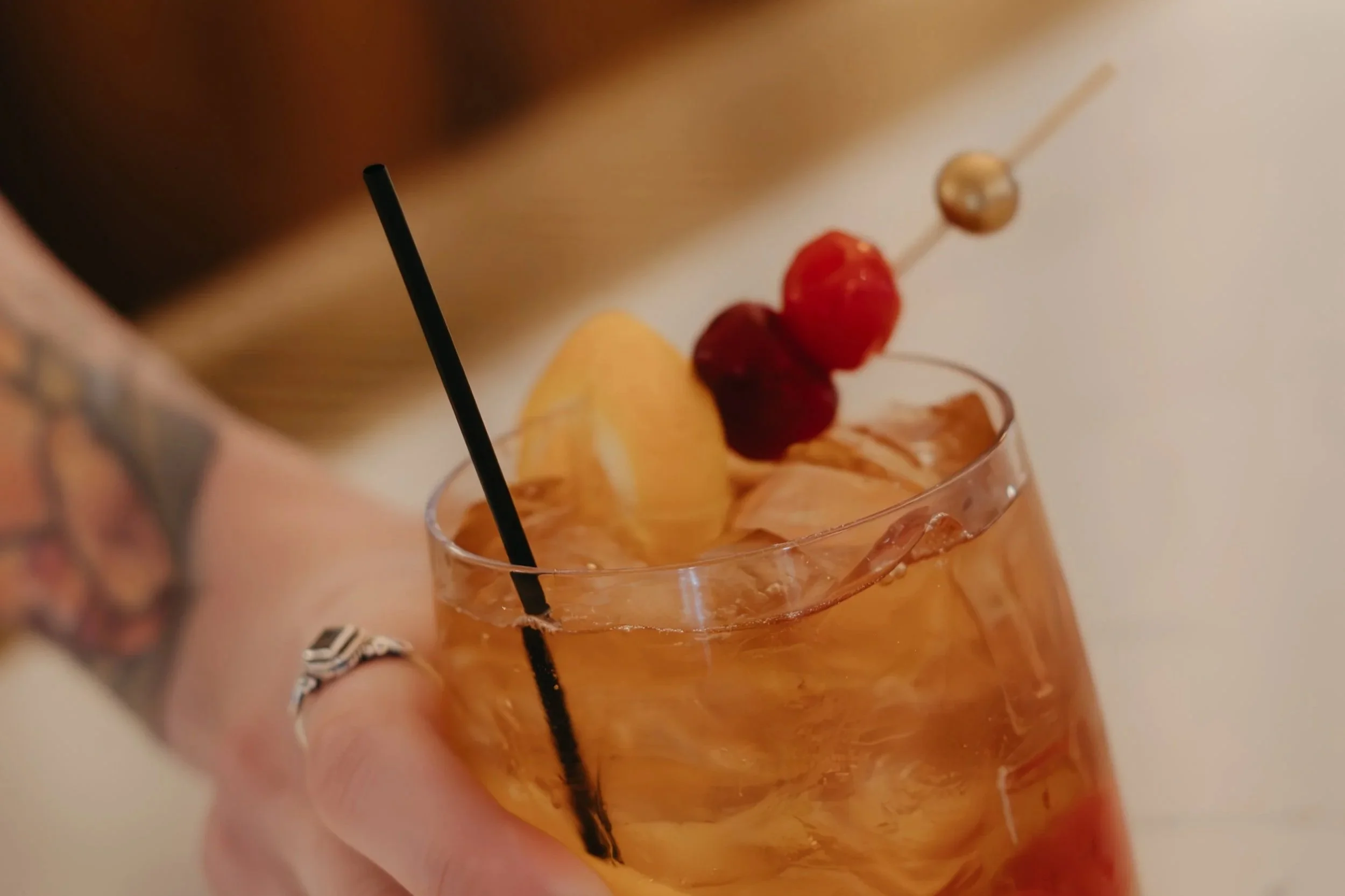 - Cocktail tables with black house linens
